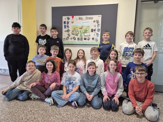 Strom - Workshop Die Kinder der 3a spielten in einem Workshop der EVN den Weg des Stroms nach. Mit viel Freude wurde auch ein Plakat davon mit Fotos gestaltet. Zurück Weiter