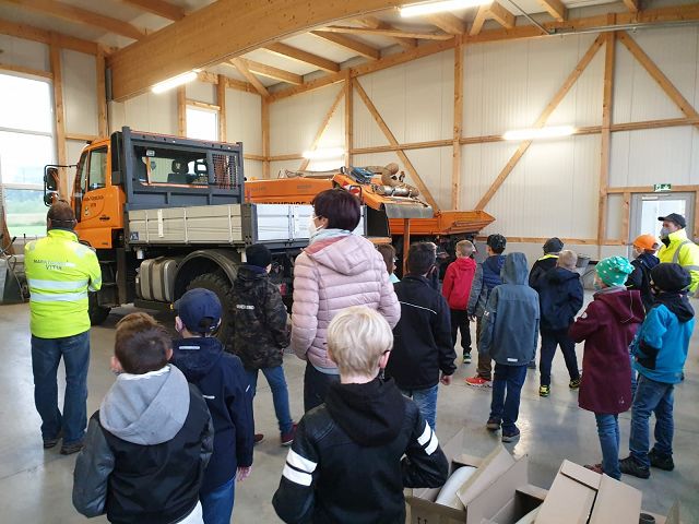 Besuch im Bauhof Vitis Die 4. Klasse besuchte den Bauhof Vitis und erfuhr viel Interessantes über dessen Aufgaben. Zum Schluss gab es noch eine kleine Nascherei von unserer Frau Bürgermeisterin. Zurück Weiter