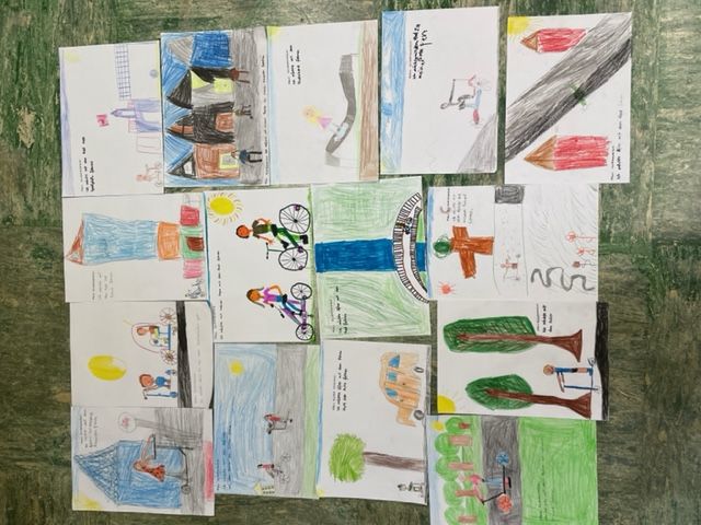 Alle gestalteten tolle Kunstwerke zum Thema "Rad fahren" und "Gehen mit der Familie macht Spaß" und formulierten dazu ihren Klimawunsch.