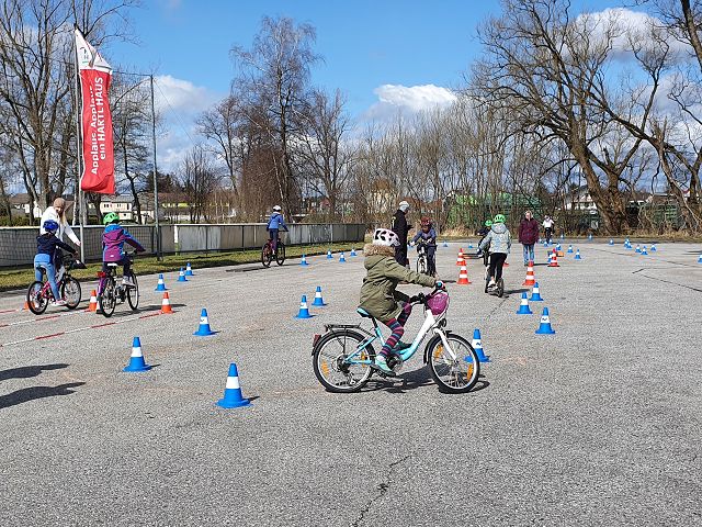 Der Parcours bot den Schüler*innen viele verschiedene Möglichkeiten, ihr Geschick auf dem Fahrrad zu testen und zu verbessern.