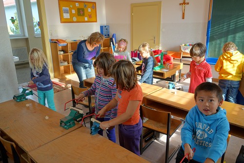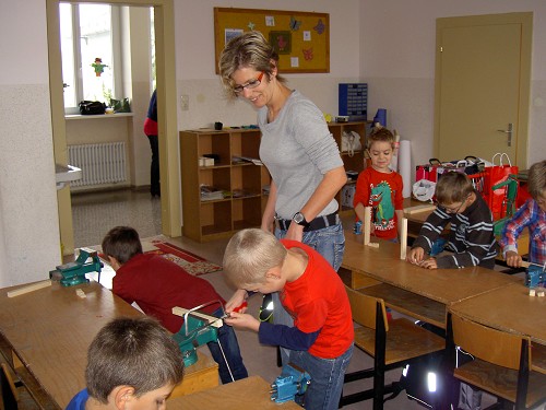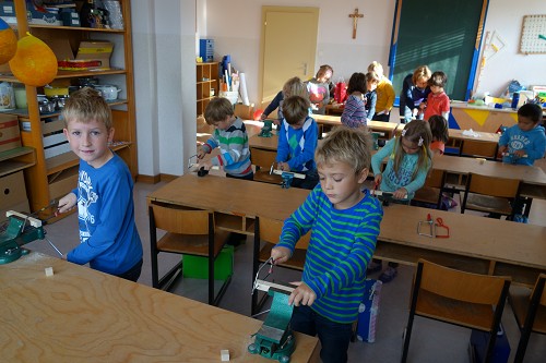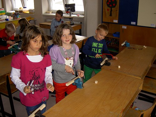 Viel Freude haben die Kinder der ersten Klassen beim Werkunterricht.