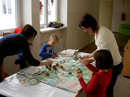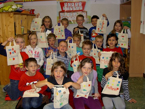 Auch die Kinder der 1b waren im Werkraum besonders fleißig. Mit Kartoffeldruck gestalteten sie ihre Stofftaschen. Außerdem arbeiteten sie sehr geschickt mit den Sägen. Vielen Dank den fleißigen Mamas für die tolle Unterstützung!