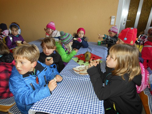 Nach der Besichtigung des Bauernhofes gab es für die Kinder eine liebevoll zubereitete Jause, die allen köstlich schmeckte. Herzlichen Dank den fleißigen Muttis!