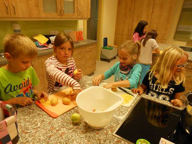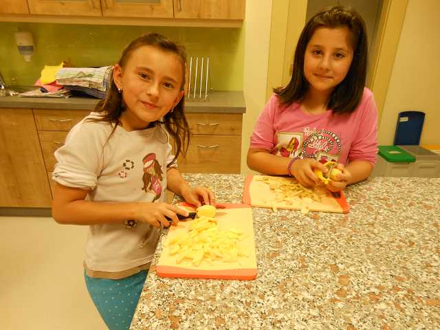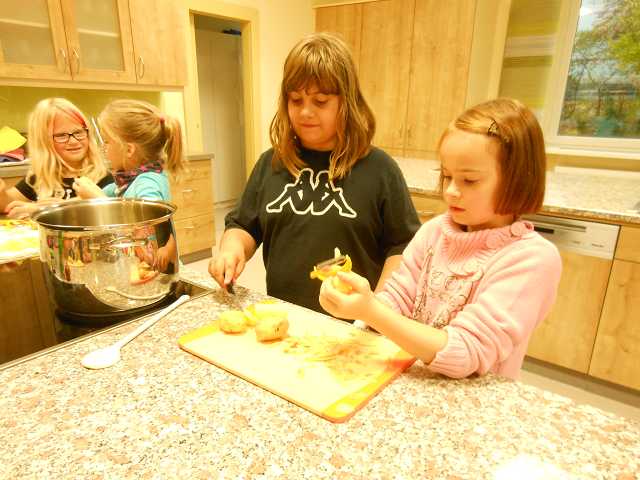 Es waren verschiedene Versuche, eine Kartoffelausstellung mit diversen Sorten im Klassenraum und ein Film über Anbau und Ernte dabei. Außerdem wurde eine Kartoffelsuppe gekocht, die allen besonders gut schmeckte.