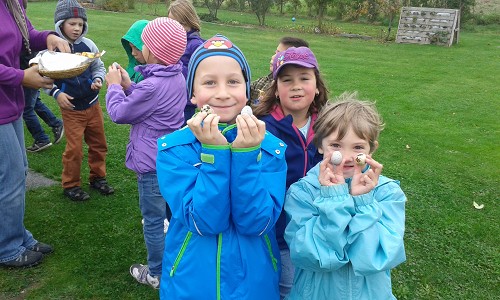 Bei Familie Pichler durften die Kinder Wachtelhühner beobachten, Eier abnehmen und Hühner füttern. Zum Schluss bekam noch jeder zwei gekochte Wachteleier. Danke!