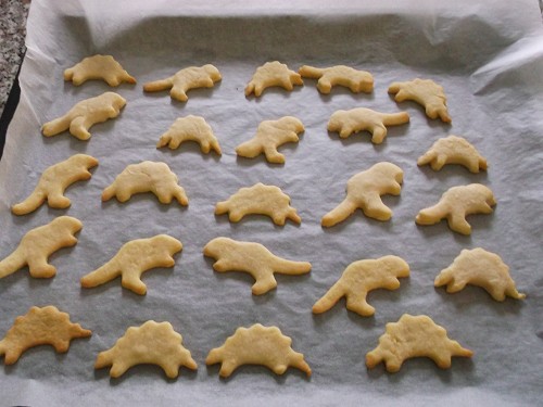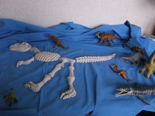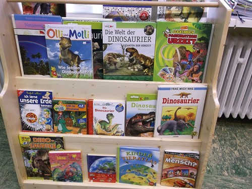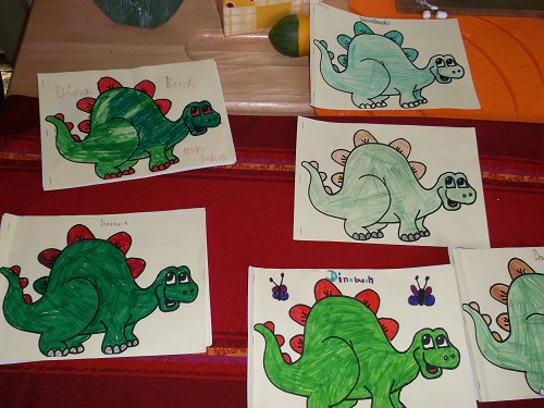 Anhand zahlreicher Bücher erforschten die Kinder das Leben der Dinos. Sie gestalteten Steckbriefe und Plakate, schrieben eigene Dinosauriergeschichten und formten ein Saurierskelett aus Gips. Rätsel und Leseübungen wurden in einem "Dinosaurierheft" gesammelt. Viel Spaß hatten die Kinder auch beim Dinolied. Zum Abschluss wurden noch leckere Dinosaurierkekse gebacken.