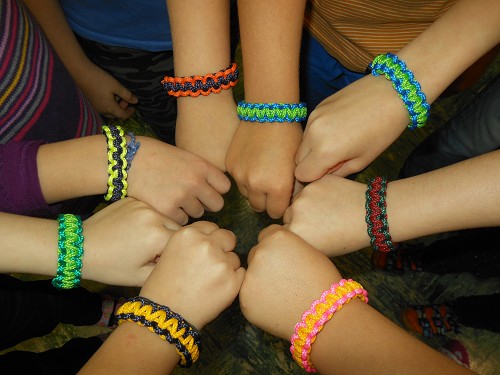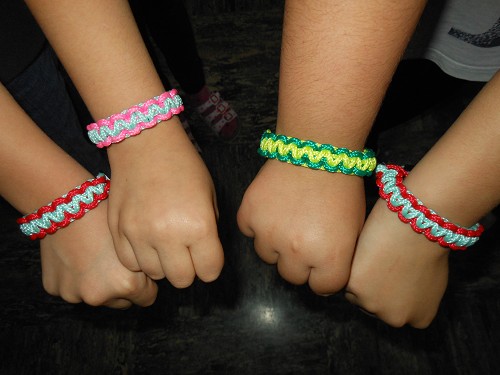 Paracord knüpfen 3b Eine neue Knüpftechnik lernten die Kinder der 3b kennen. Aus verschiedenfarbigen Paracordschnüren wurden bunte Armbänder hergestellt. Die Kinder hatten Freude daran und tragen die Bänder gerne. Zurück Weiter