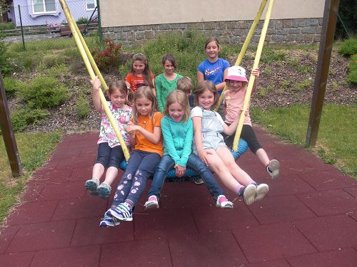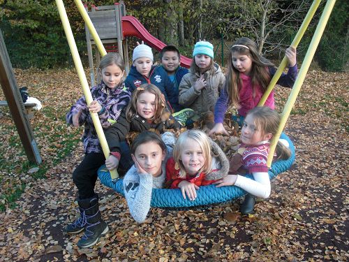 Oft sind die Kinder auch draußen und vergnügen sich auf dem Spielplatz des Kindergartens.