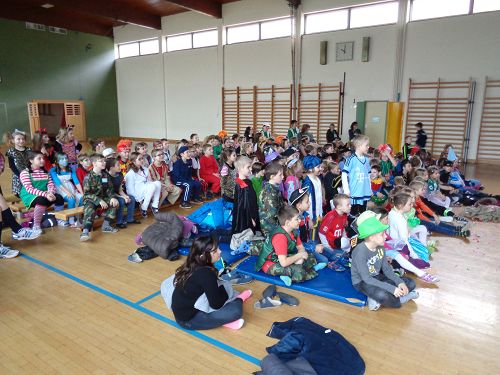 Alle Kinder kamen verkleidet in die Schule und die Lehrerinnen hatten sich in eine Fußballmannschaft verwandelt.