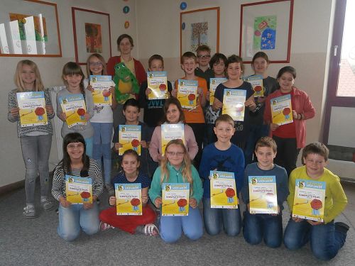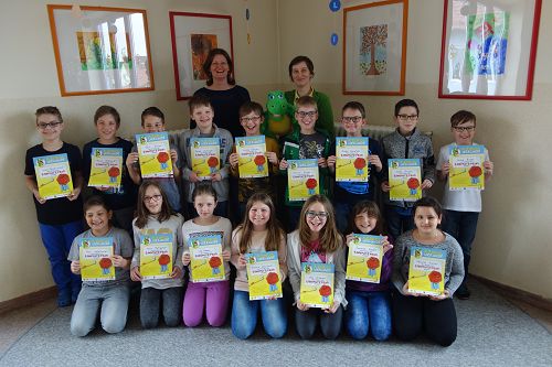 In der letzten Zahngesundheitseinheit galt es, bei einem Quiz "Belohnungszähne" für richtige Antworten zu sammeln. Zum Schluss erhielt jeder Teilnehmer eine Urkunde und durfte ein letztes Mal das kleine, grüne Tierchen streicheln.