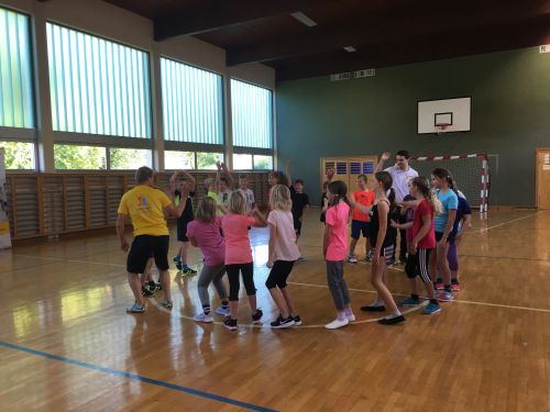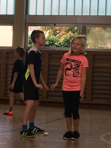 Lustige Spiele förderten u.a. motorische Grundfähigkeiten wie Laufen und Springen, aber auch die Orientierungs- und Reaktionsfähigkeit der Viertklässler.