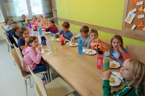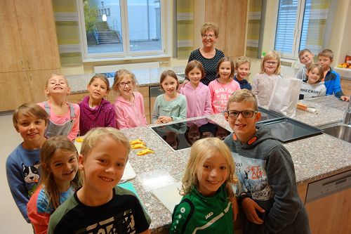 Da jede Klasse einen Sack voll Erdäpfel geschenkt bekommen hatte, wurden als Abschluss in unserer Schulküche Braterdäpfel vom Blech zubereitet.
