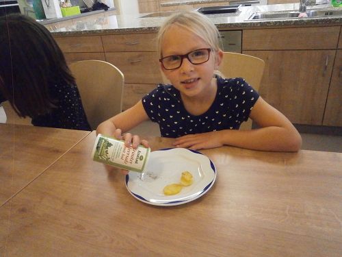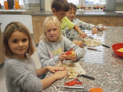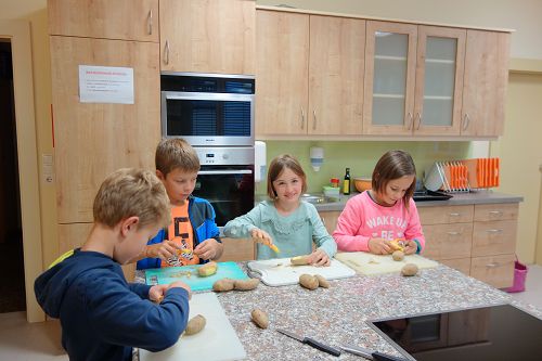 Das Mini-Projekt startete am diesjährigen Herbstwandertag bei Familie Hofbauer in Eschenau. Dort wurde fleißig gegraben, geschnipselt, gekocht und gestempelt.
