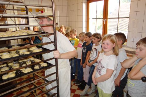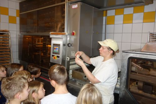 In der Backstube erfuhren die Kinder viel Interessantes über die Maschinen und Tätigkeiten eines Bäckers.