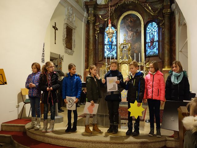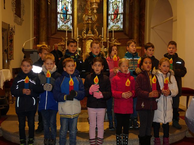 Die Kinder der 2a brachten mit ihrem Lied gleich zu Beginn Licht in die Kirche.