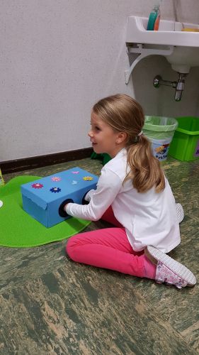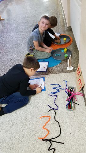 Der neue Buchstabe wird am Computer gehört, mit Biegeplüsch und Knetmasse geformt, in einer Box ertastet, nachgegangen und Ähnliches. Dieser Stationenbetrieb ist für die Kinder etwas Besonderes und sie freuen sich immer schon sehr darauf.