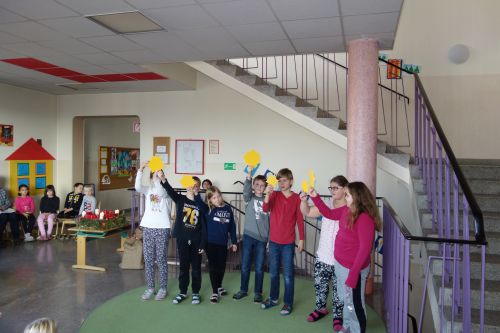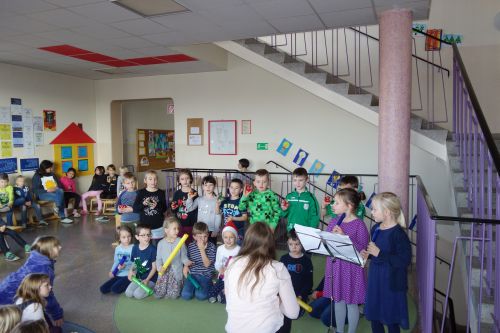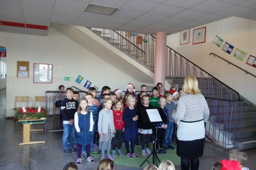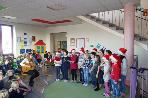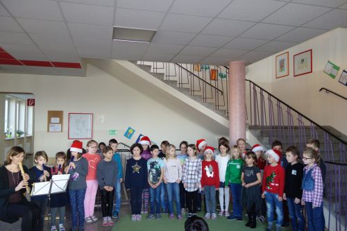 Am letzten Tag vor den Ferien kamen alle Kinder zu einer kleinen Weihnachtsfeier in der Pausenhalle zusammen.